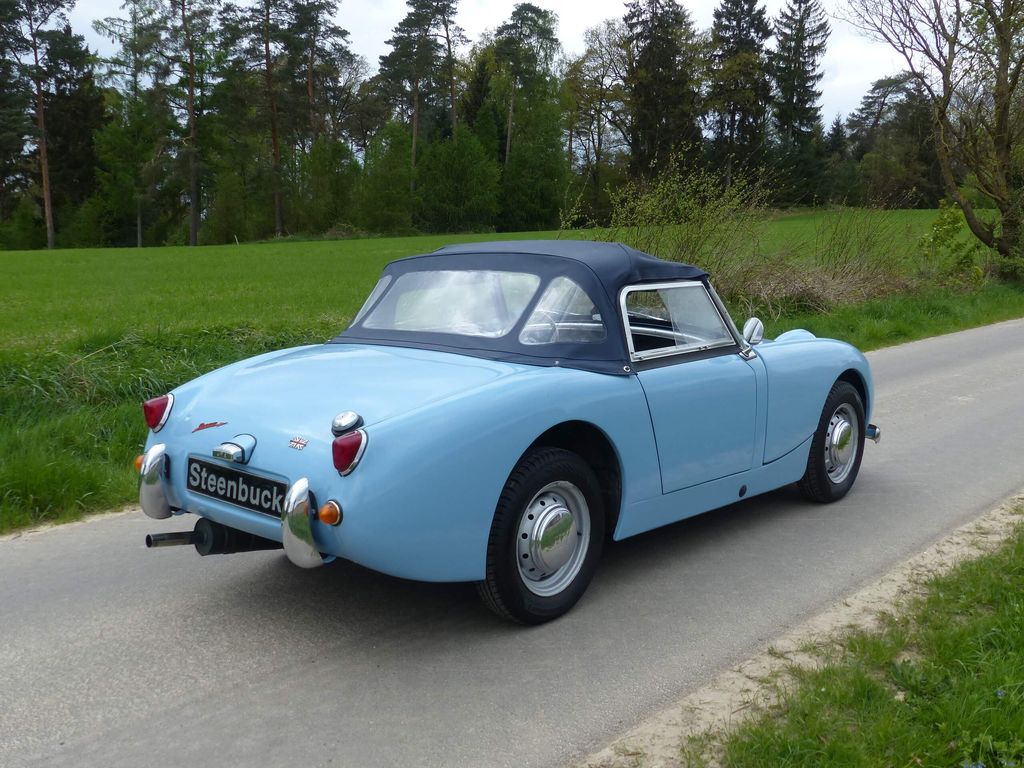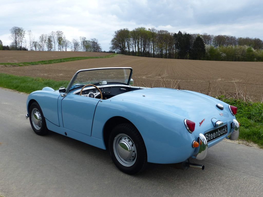 Our Austin-Healey Sprite Roadster was technically optimised. The little speedster got a little more of everything: a more powerful engine, 5-speed gearbox and front disc brakes. All the original components are still there, but the driving pleasure is so great that hardly anyone will want to put the technical modifications back. The classic car is registered in Germany.