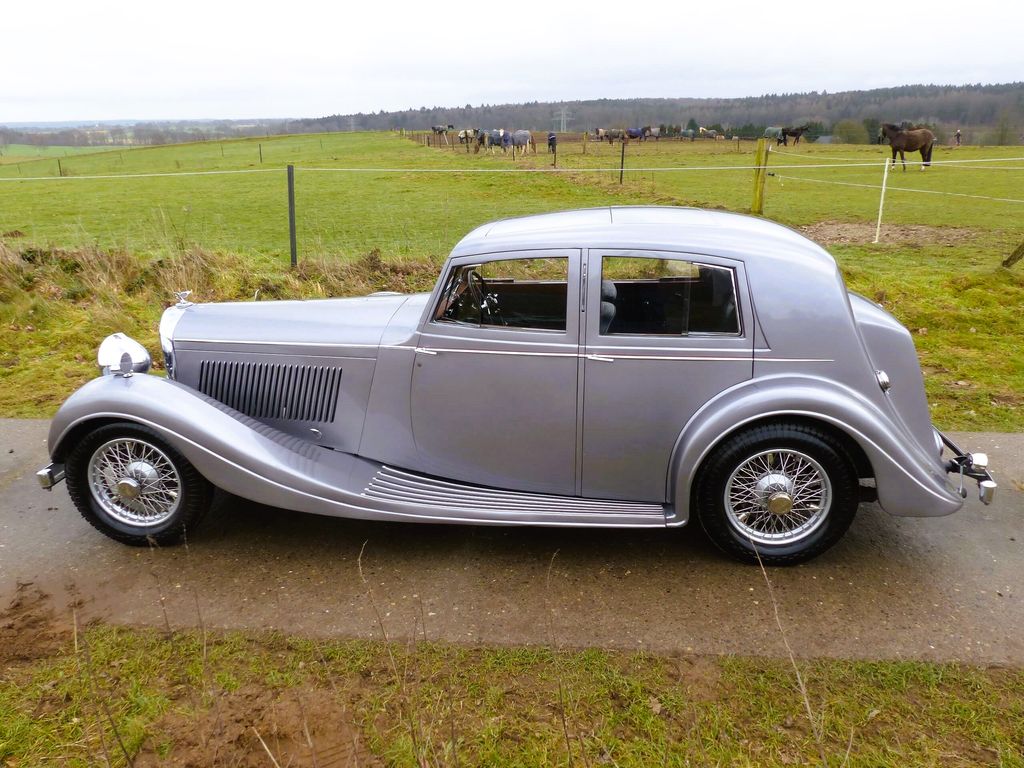 Our Bentley 4 ¼ Litre (chassis no. B-117-HM) was delivered in 1936 as a sports saloon with bodywork by Park Ward. The Hon. William Neville Berry was the lucky owner. Later, this chassis was given a body in the “Razor Edge” design by Gurney Nutting (from chassis no. B-176-MR). A body swap on the same chassis was quite common in the 1950s. The current owner had the classic car extensively overhauled from 2010 to 2011. With this classic, you are acquiring a reliable, long-distance vehicle that can certainly be driven quickly.