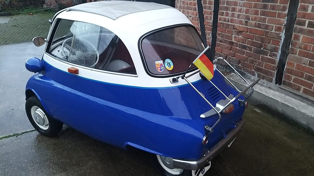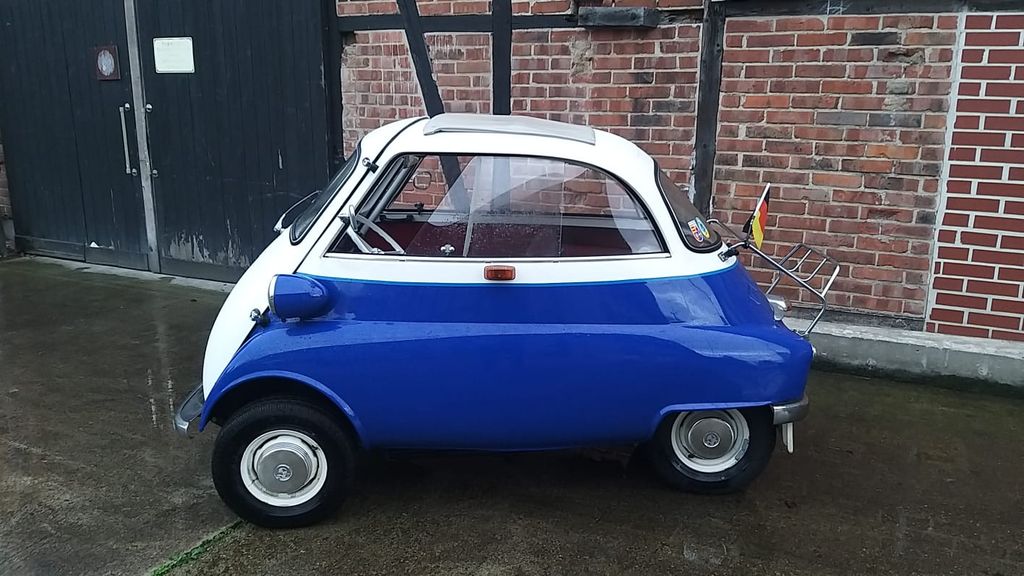 Our BMW Isetta 250 Motocoupé in the Bavarian colours of blue and white has been completely overhauled. It is the 245 cc single-cylinder engine version. 9 kW or 12 hp is enough to reach a top speed of 85 km/h. The BMW Isetta is simply a lovable vehicle.