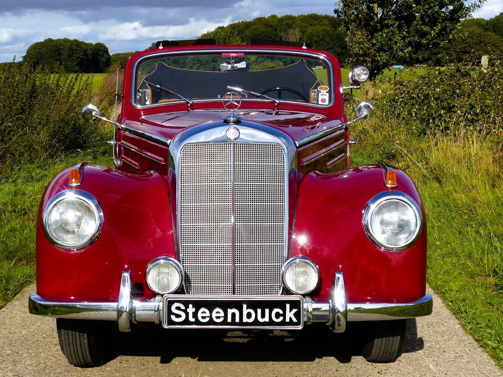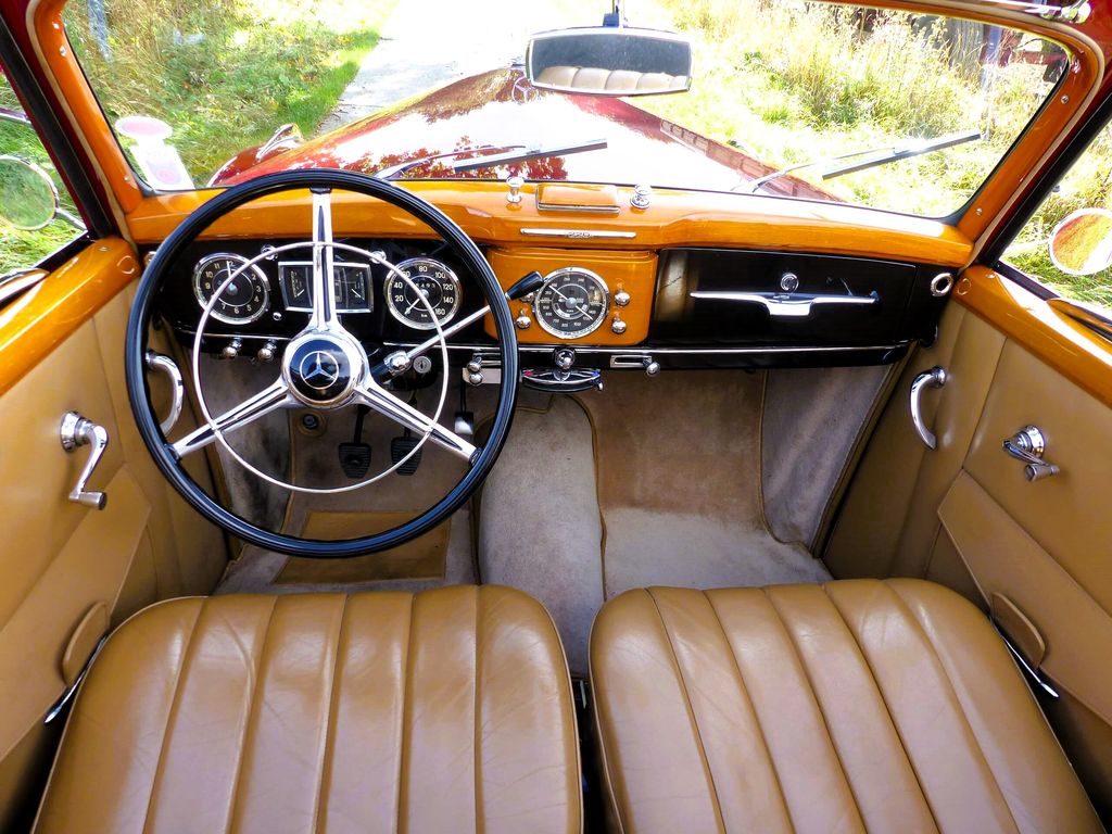 Our Mercedes-Benz 220 Cabriolet B is a true 4-seater with two doors and four rectractable side windows. It cost an impressive DM 18,260 at the time. This Cabriolet was completely restored before 2011 and has been with the second owner since then. It has been driven rarely but regularly and is in very good condition.