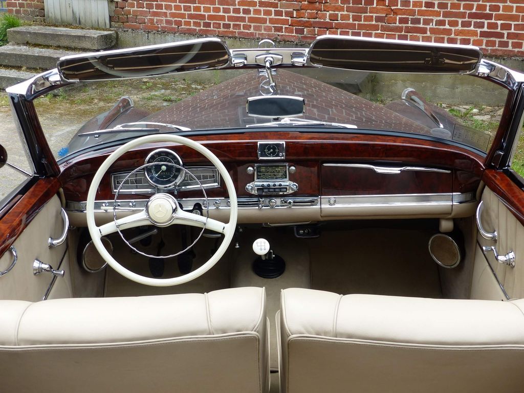 Our Mercedes-Benz 300 S Cabriolet A was originally delivered to the USA. The classic car has been registered in Germany since 2008. Before that, it underwent a documented overhaul. This luxury cabriolet looks particularly elegant in its simple colour combination. The Type 300 S is the pinnacle of post-war production by Daimler-Benz.
