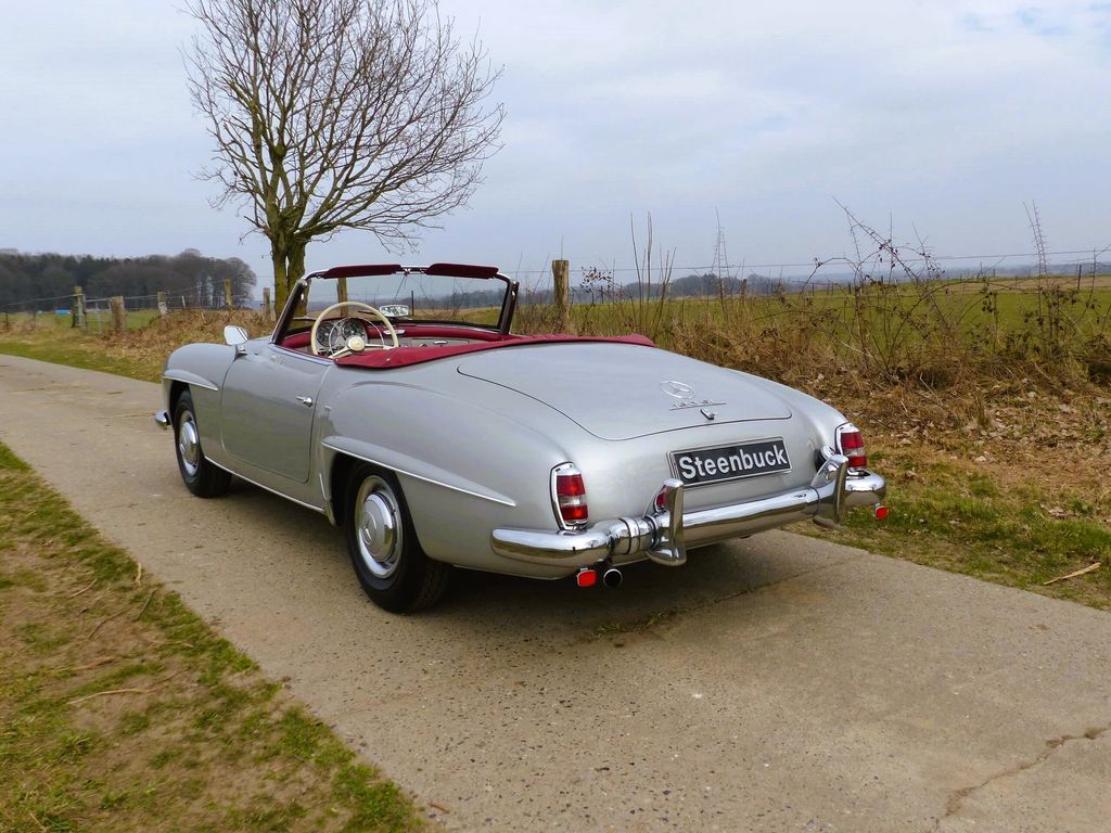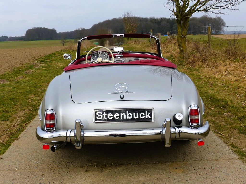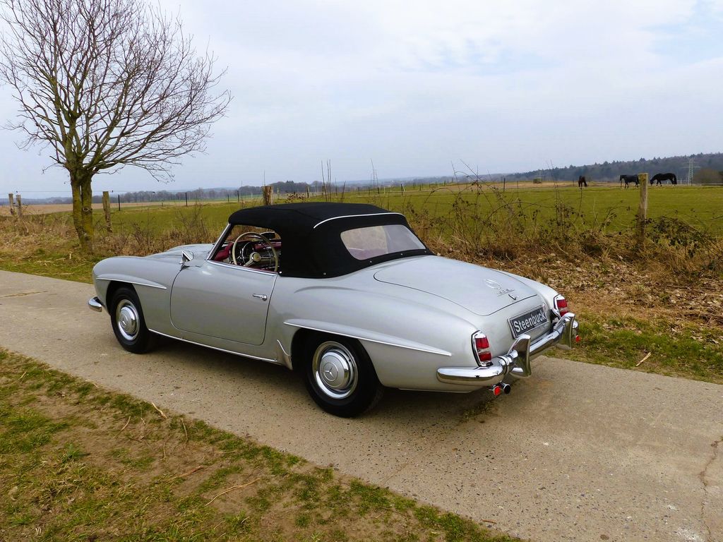 Unser Mercedes-Benz 190 SL Roadster hatte seine Erstauslieferung in Saudi Arabien, tauchte dann später in den USA auf. Seit 1989 ist er in Deutschland und wurde hier restauriert. Heute ist er in 2. deutscher Hand und mit H-Kennzeichen zugelassen. Ein DEKRA-Gutachten bescheinigt dem Oldtimer einen exzellenten Zustand mit Note 1. Das halten wir für zu optimtisch. Dieser 190 SL ist ein Klassiker im besten Sinne.